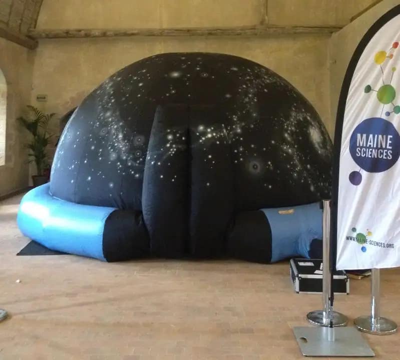 A diferencia de los grandes planetarios de piedra y hormigón, el de Maine Sciences destaca por su versatilidad. Cuenta con una cúpula hinchable de 5 metros de diámetro, diseñada por Qim Guixa, que puede instalarse en gimnasios, salas polivalentes o centros culturales. Esta estructura permite alojar a unos 25 espectadores por sesión, creando un ambiente íntimo que favorece la interacción con el guía o mediador científico.