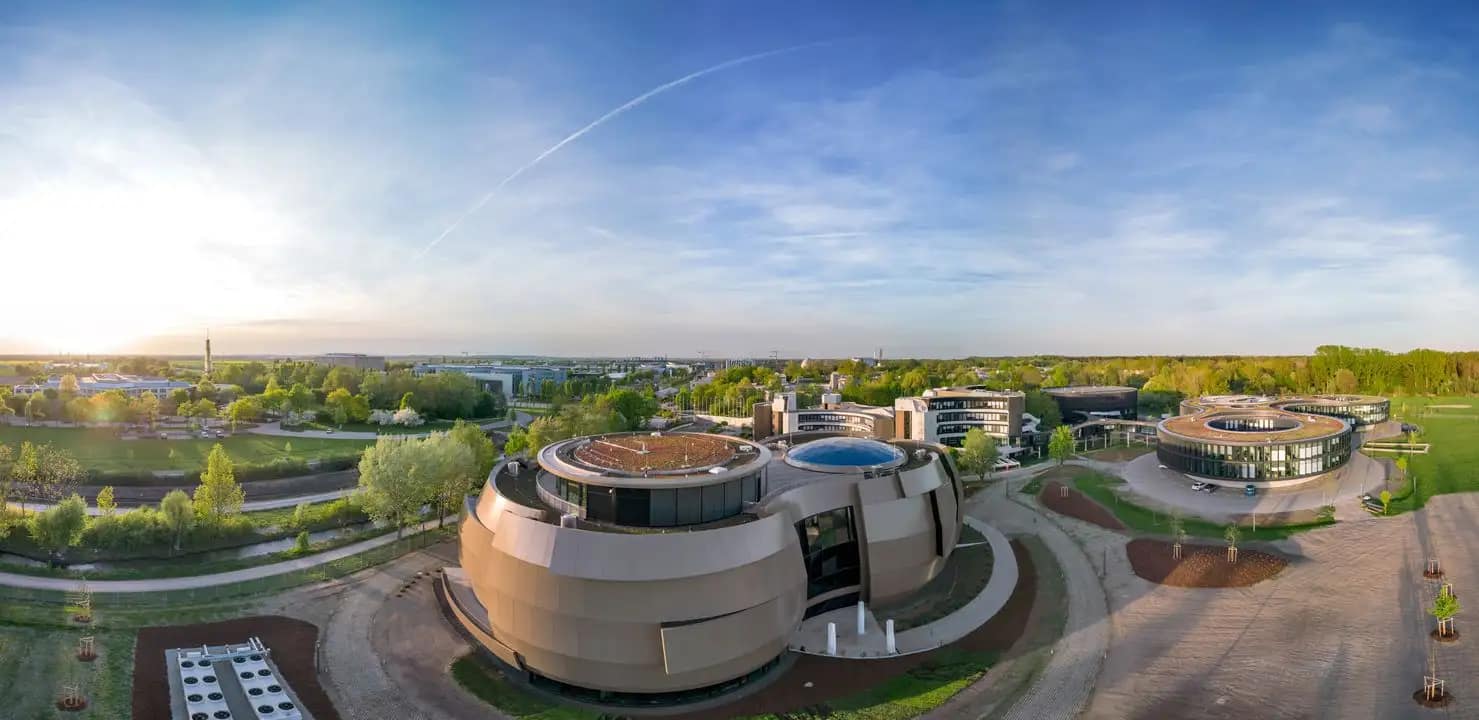 En el corazón del campus de investigación de Garching, a las afueras de Múnich, se levanta una estructura cuya forma ya anticipa lo que guarda en su interior. El ESO Supernova Planetarium & Visitor Centre no es un edificio convencional. Su diseño imita un sistema de estrellas binarias donde una estrella transfiere masa a su