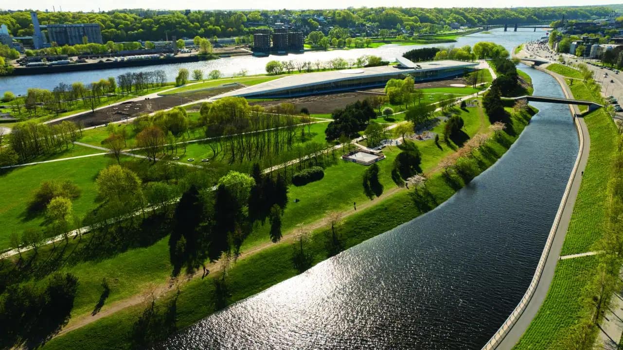 En el corazón de la segunda ciudad más grande de Lituania, sobre la isla de Nemunas, se levanta una estructura que parece emerger del propio terreno. Se trata de Mokslo sala, conocido internacionalmente como Science Island. Este centro nacional de ciencia e innovación, inaugurado a finales de 2024, representa el mayor esfuerzo del país báltico