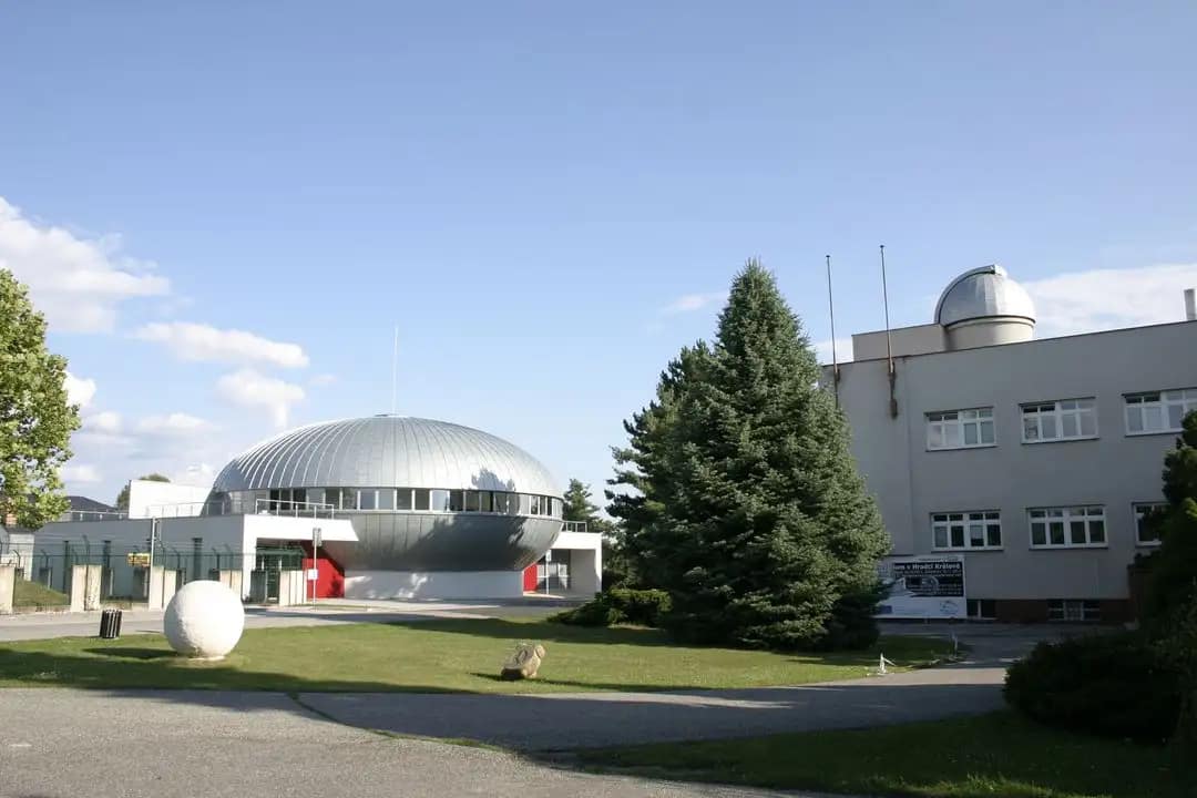 En la cima de la colina Zámeček, al sur de la ciudad checa de Hradec Králové, se alza un edificio cuya arquitectura rompe con el paisaje tradicional de la zona. Se trata del Observatorio y Planetario de Hradec Králové, un complejo que combina la tradición de la observación astronómica clásica con la tecnología digital más